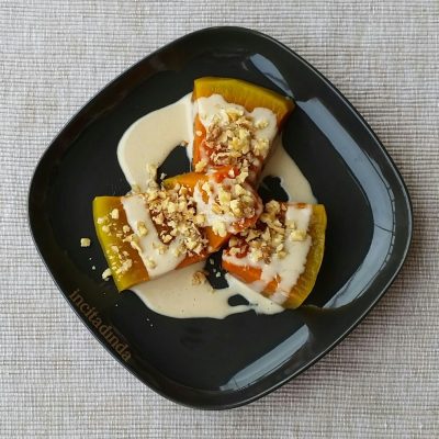 3 Yapıldı | Adım 3Biber yıkanıp ayıklanır ve tavla zarı şeklinde ufak doğranıp peynire eklenir. |